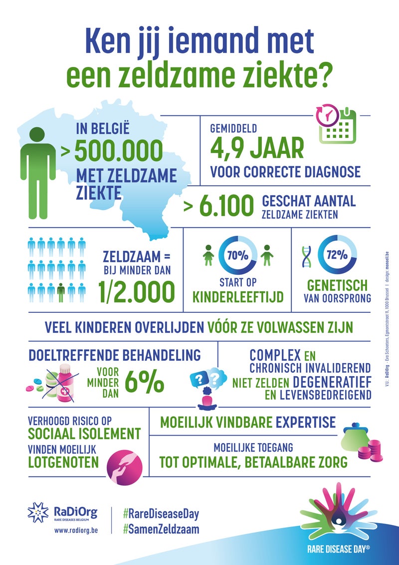 Heel wat informatie kan je terug vinden op de website https://www.rarediseaseday.be/samenzeldzaam/ .